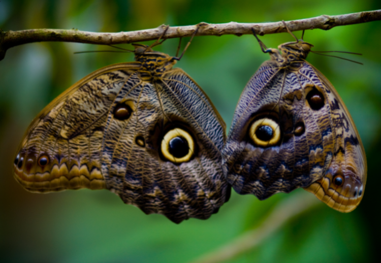 Itulah kupu-kupu burung hantu alias owl butterfly. Nama latinnya Caligo memnon. Caligo berarti kegelapan. Kupu-kupu ini memang binatang crepuscular, yaitu lebih aktif ketika hari mulai senja atau ketika hari masih sangat pagi. Kalau siang hari mereka lebih banak beristirahat. Sebenarnya, kupu-kupu itu tak banyak berbeda dengan kupu-kupu lain. Hanya saja pola lingkaran pada sayapnya memang menyerupai mata burung hantu. Kalau sayap bagian depan mempunyai, mata burung hantu, maka sayap bagian belakang polos, dengan warna-warna gradasi yang indah. Panjang rentang sayapnya bisa mencapai 15 cm. Dengan sayap lebar ini, dia hanya mampu terbang dalam jarak pendek. Namun, hewan-hewan pesangsa juga akan kesulitan untuk memakannya.